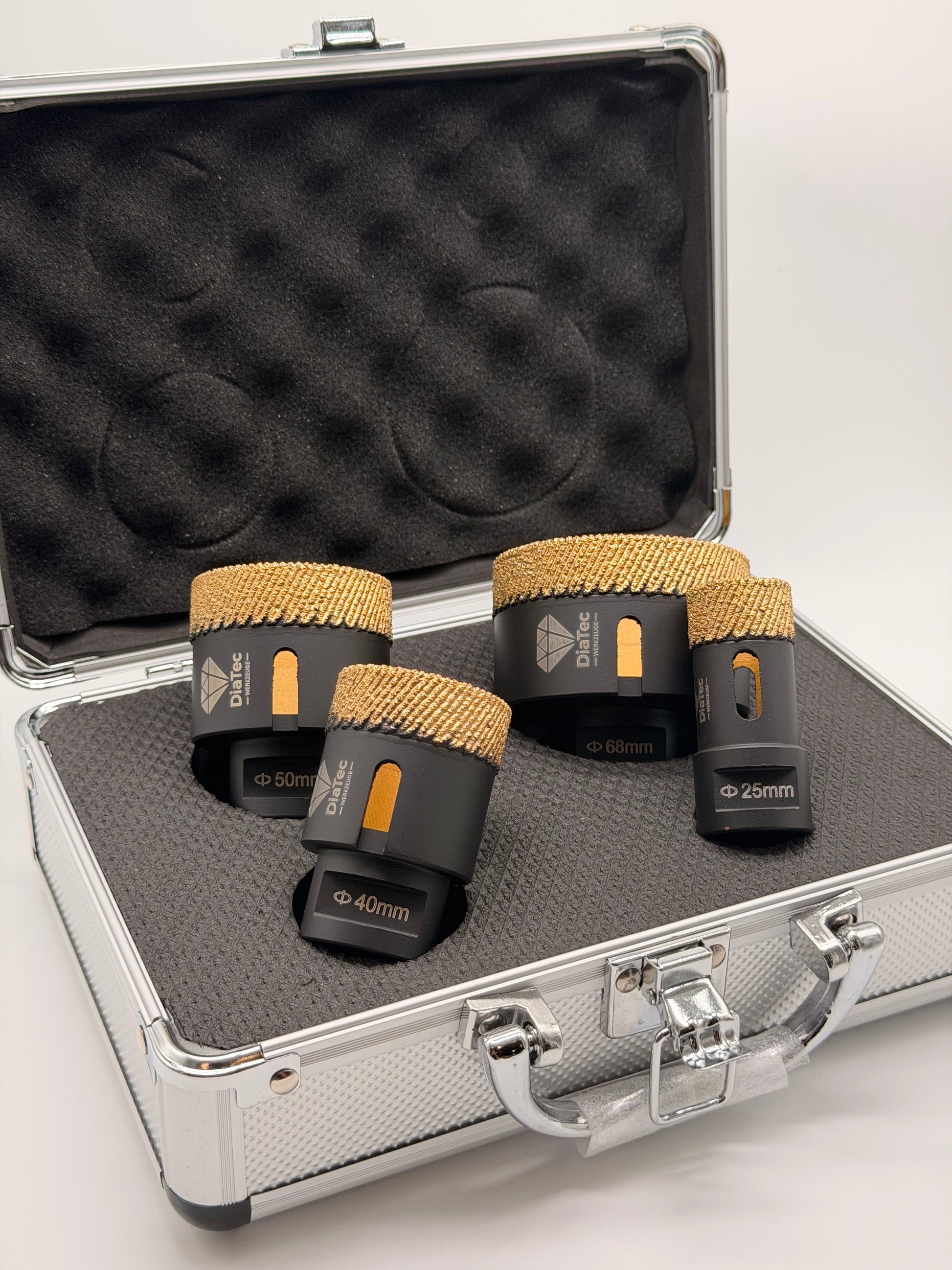 Dieser kompakte Matrix Bohrkronen-Koffer enthält vier hochwertige Diamant-Bohrkronen in den gängigsten Größen 25 mm, 40 mm, 50 mm und 68 mm – perfekt abgestimmt für den täglichen Einsatz auf der Baustelle, besonders im Bad- und Sanitärbereich.